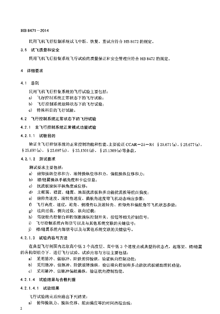 HB 8471-2014 民用飞机飞行控制系统飞行试验要求
