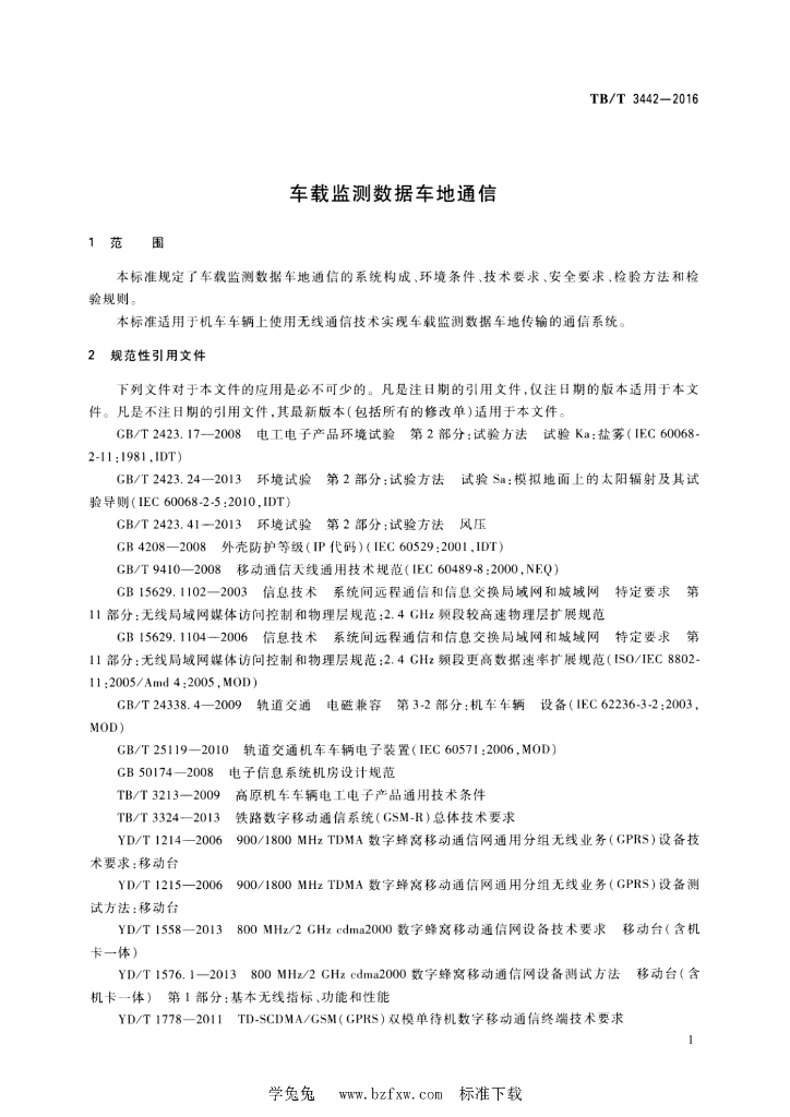 TB 3442-2016 车载监测数据车地通信