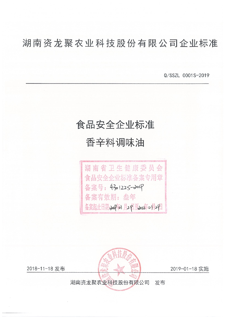 Q/SSZL 0001S-2019 香辛料调味油