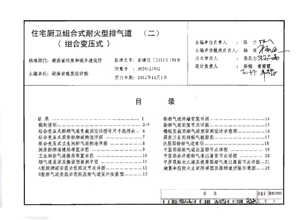 湘2012J902 住宅厨卫组合式耐火型排气道(二)组合变压式图集