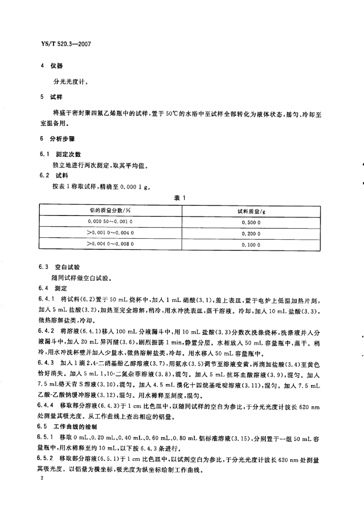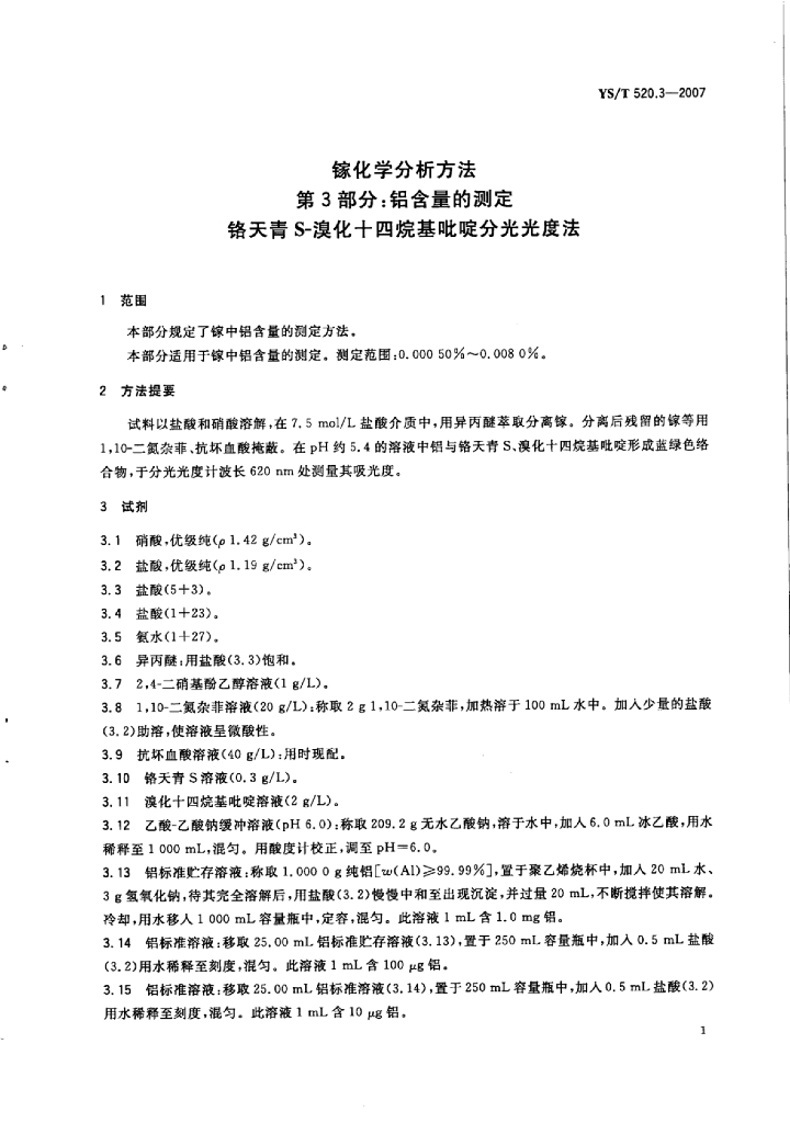 YS/T 520.3-2007 镓化学分析方法 第3部分:铝含量的测定铬天青S-溴化十四烷基吡啶分光光度法