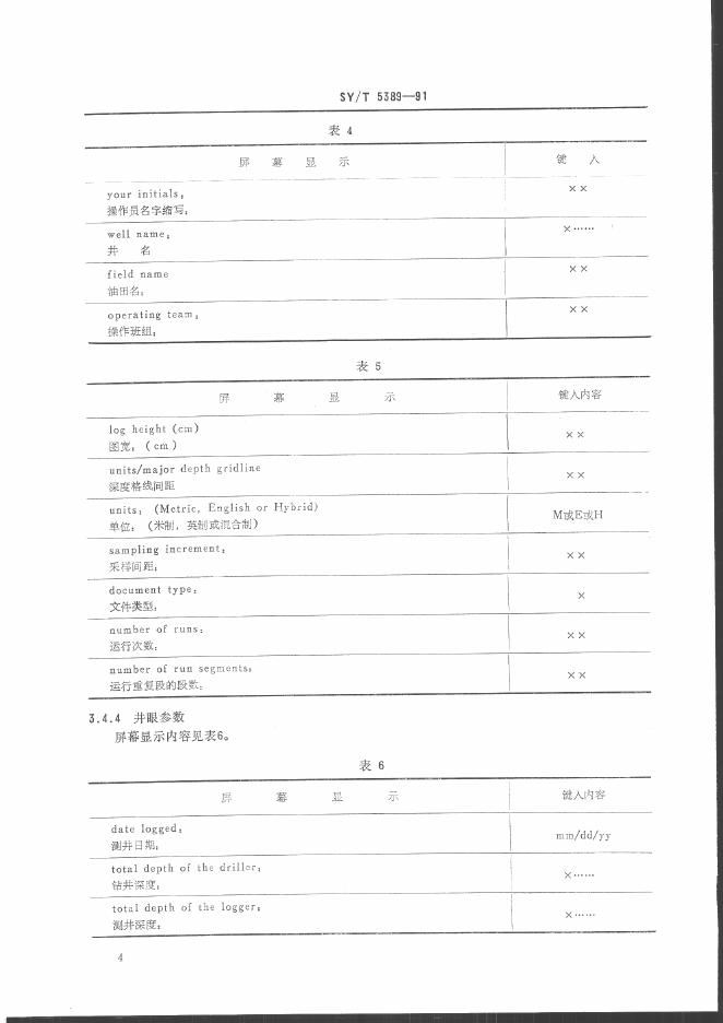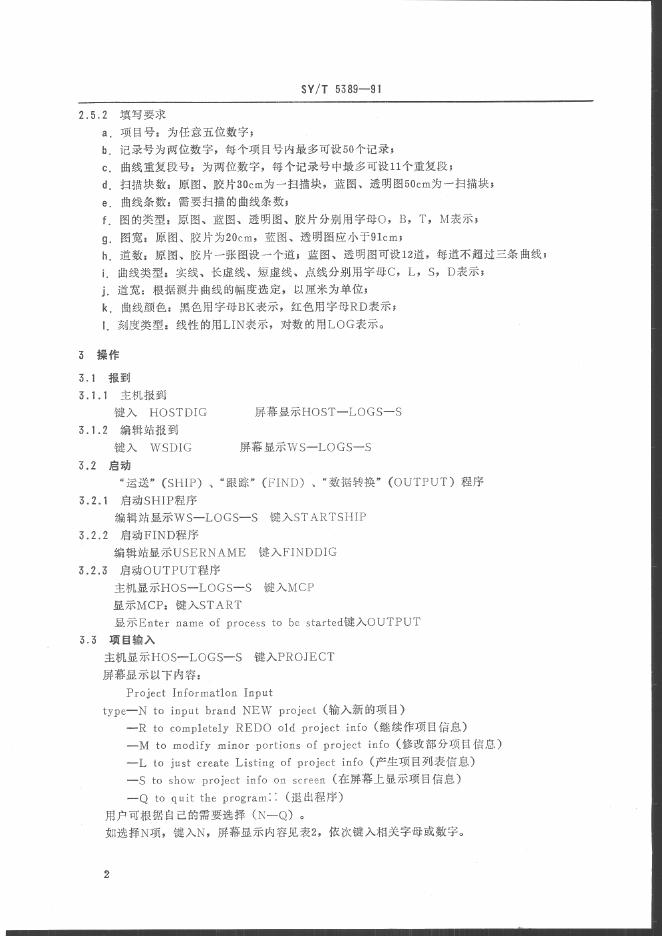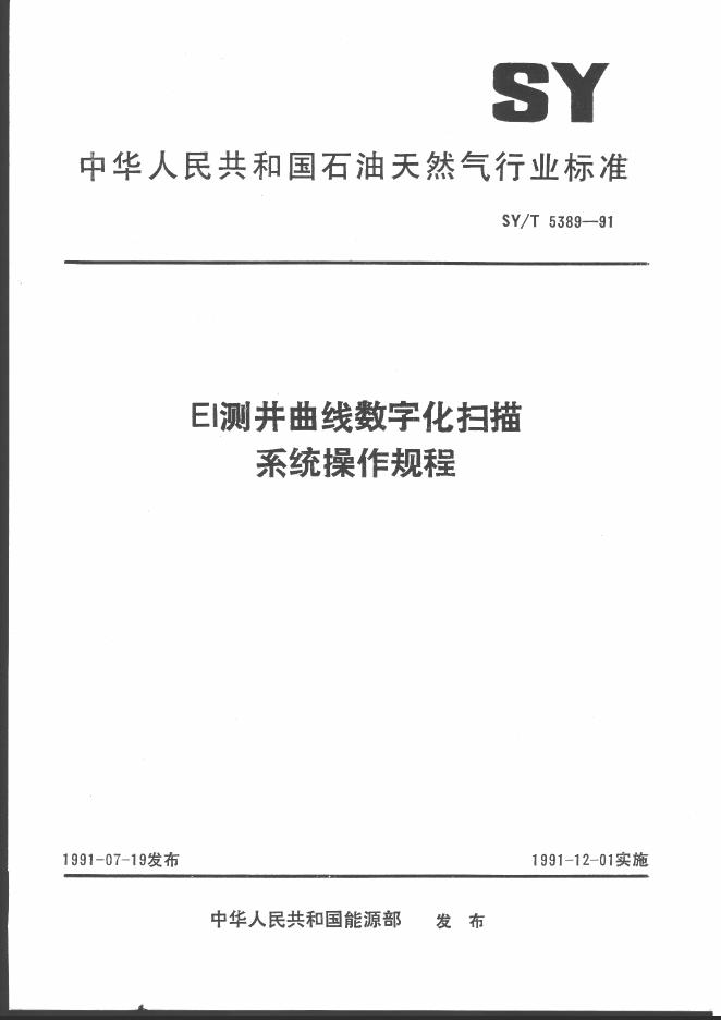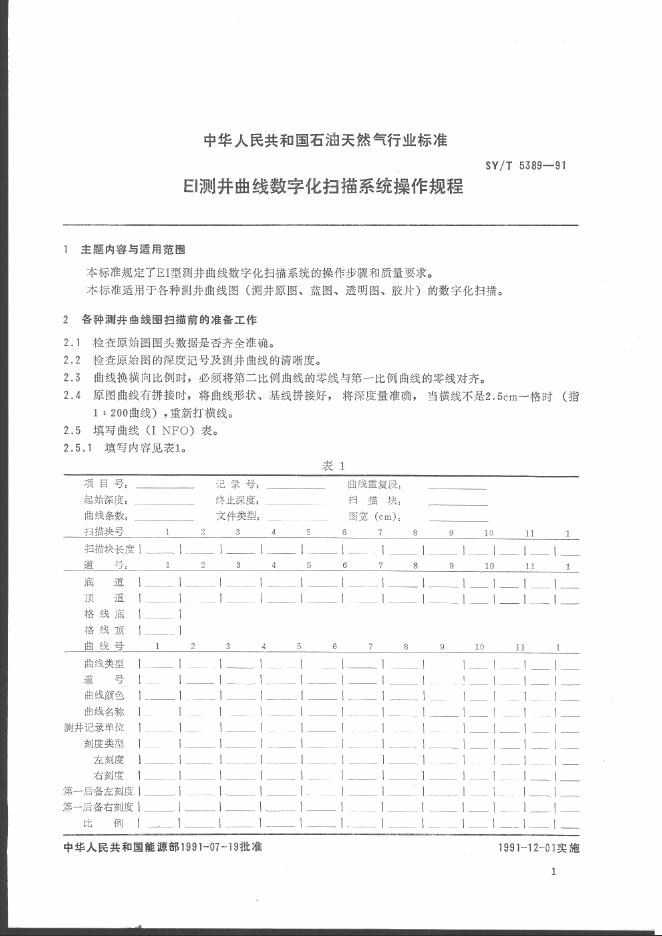SY/T 5389-1991 EI测井曲线数字化扫描系统操作规程