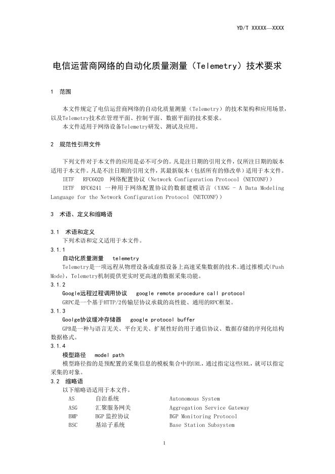 YD/T 4820-2024 电信运营商网络的自动化质量测量(Telemetry)技术要求