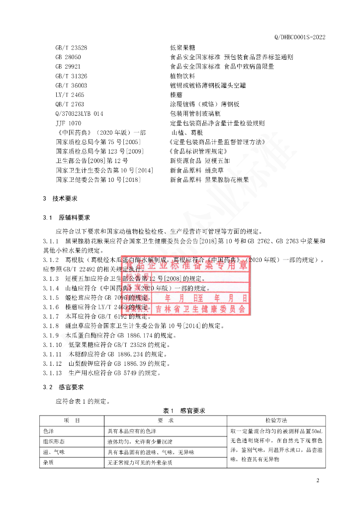 Q/DHBC 0001S-2022 黑果腺肋花楸果葛根肽饮液