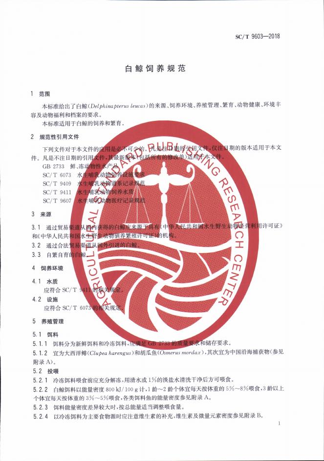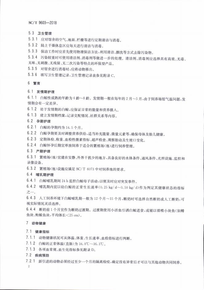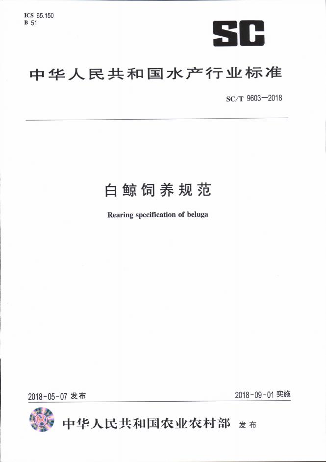 SC/T 9603-2018 白鲸饲养规范