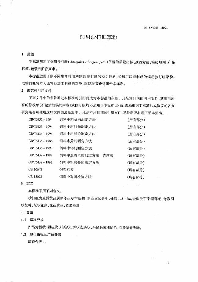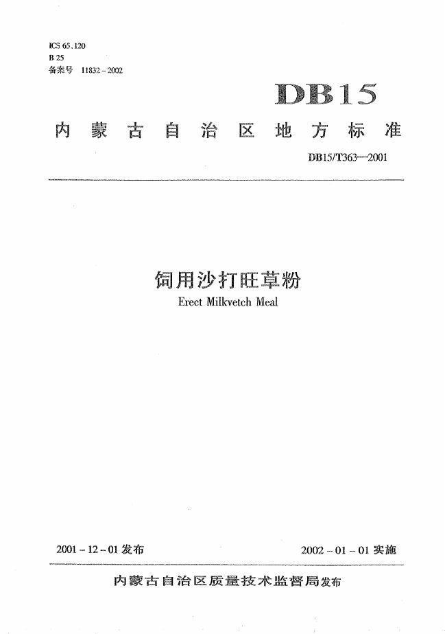DB15/T 363-2001 饲用沙打旺草粉