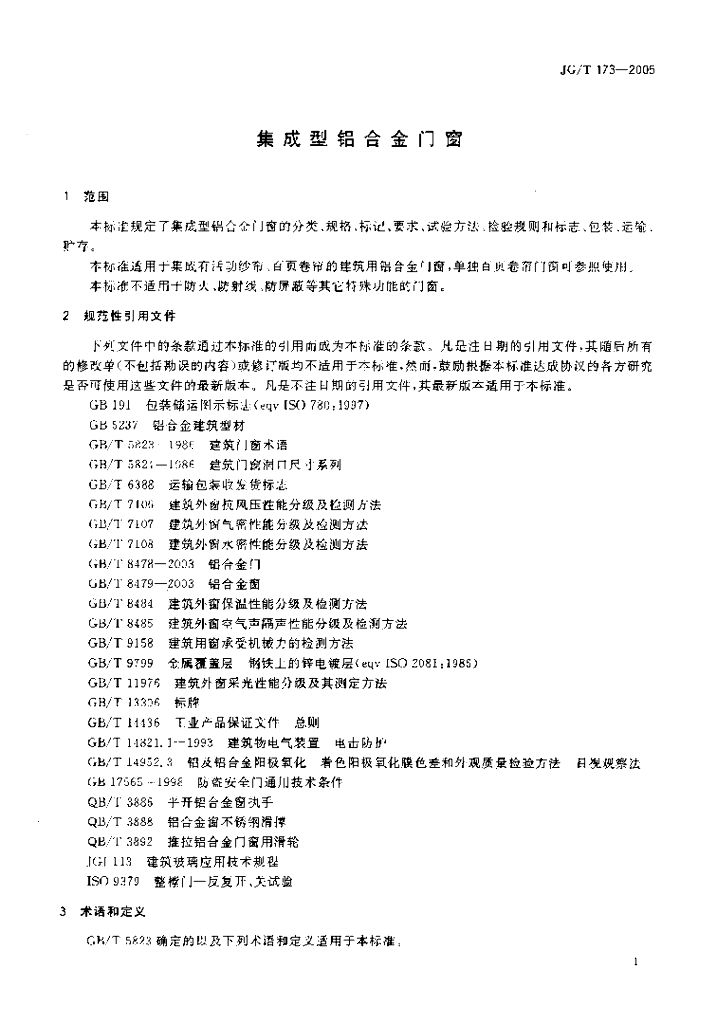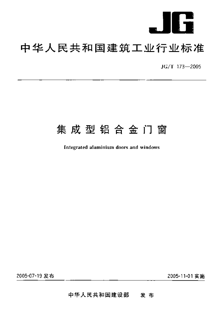JG/T 173-2005 集成型铝合金门窗