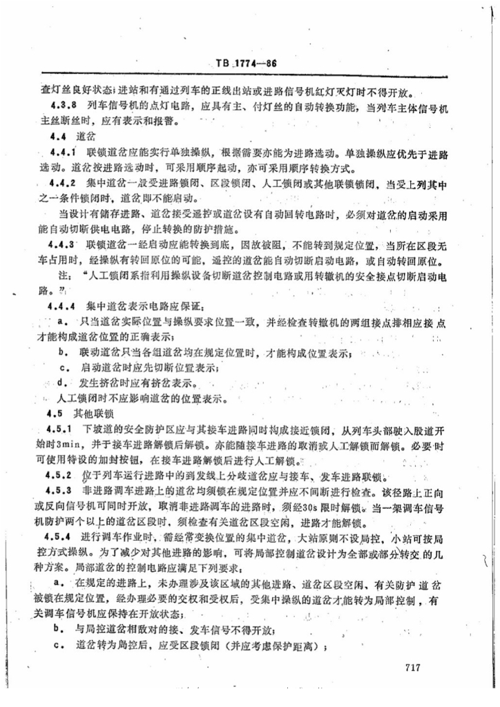 TB/T 1774-1986 继电式电气集中联锁技术条件