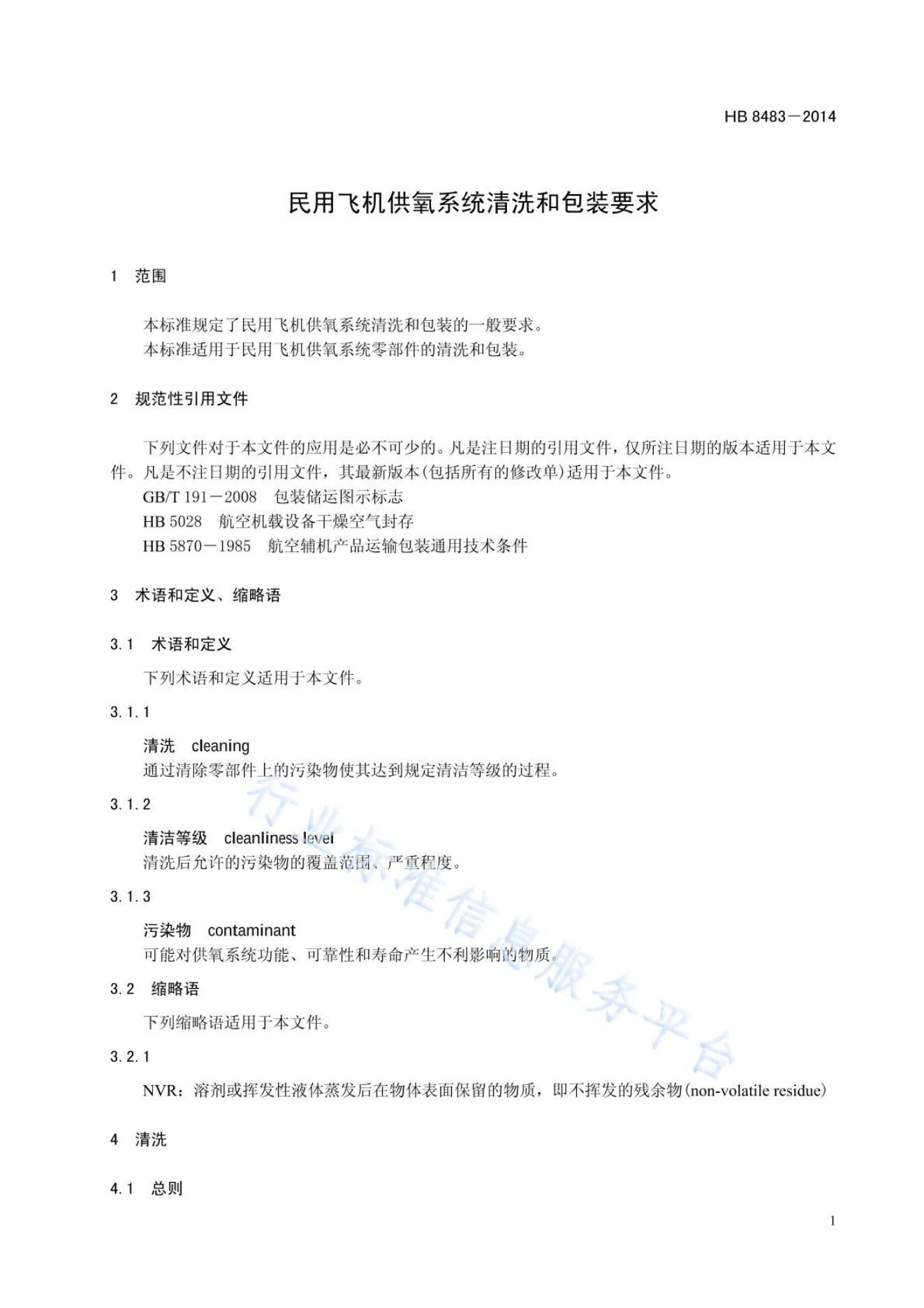 HB 8483-2014 民用飞机供氧系统清洗和包装要求