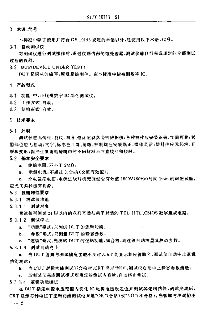 SJ/T 10111-1991 GH3123型集成电路 自动测试仪
