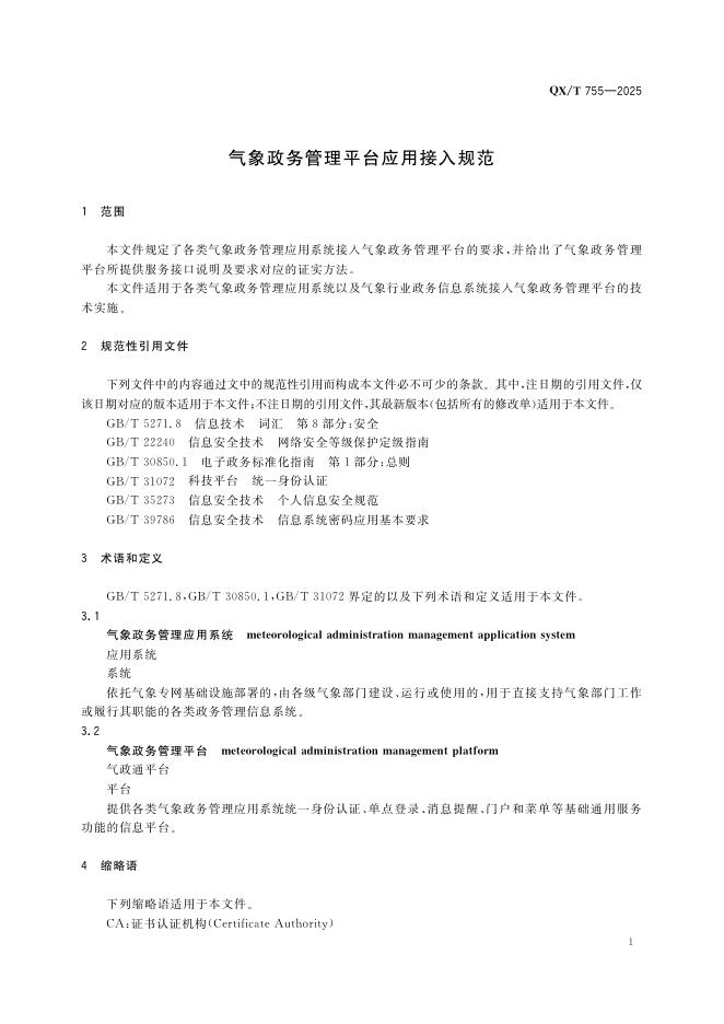 QX/T 755-2025 气象政务管理平台应用接入规范