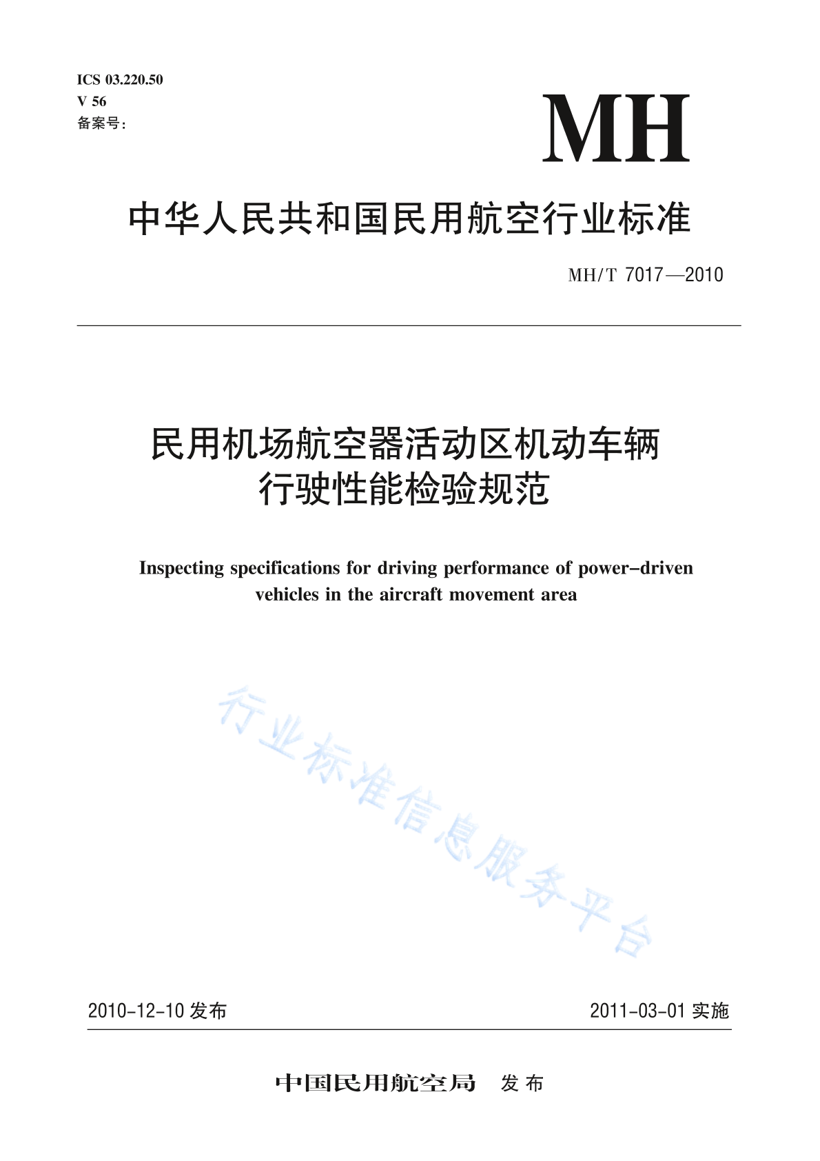 MH/T 7017-2010 民用机场航空器活动区机动车辆行驶性能检验规范