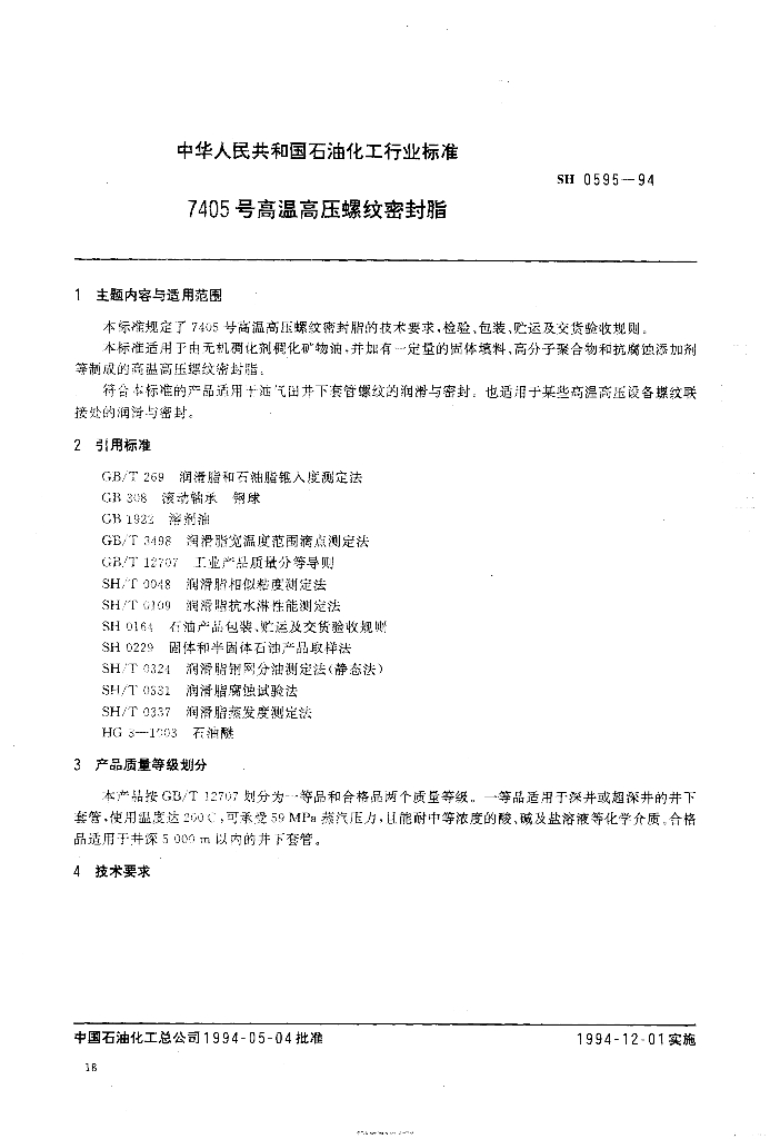 SH 0595-1994 7405号高温高压螺纹密封脂