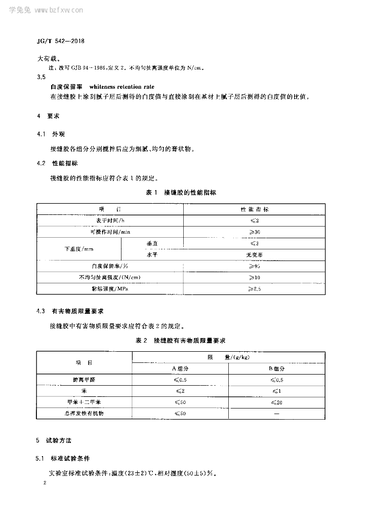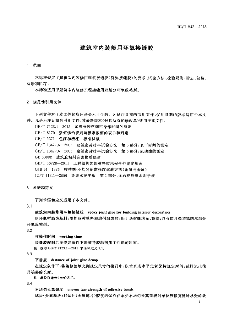 JG/T 542-2018 建筑室内装修用环氧接缝胶