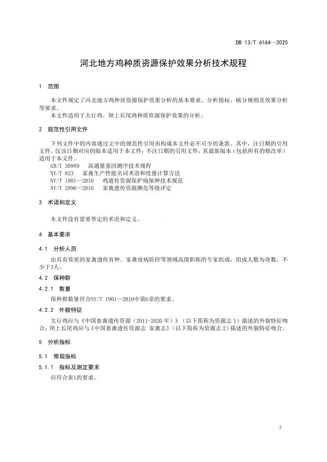 DB13/T 6164-2025 河北地方鸡种质资源保护效果分析技术规程