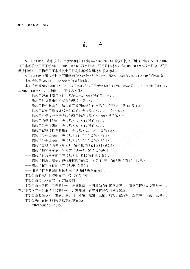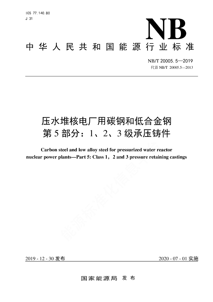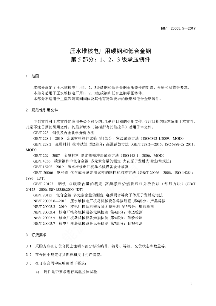 NB/T 20005.5-2019 压水堆核电厂用碳钢和低合金钢 第5部分:1、2、3级承压铸件