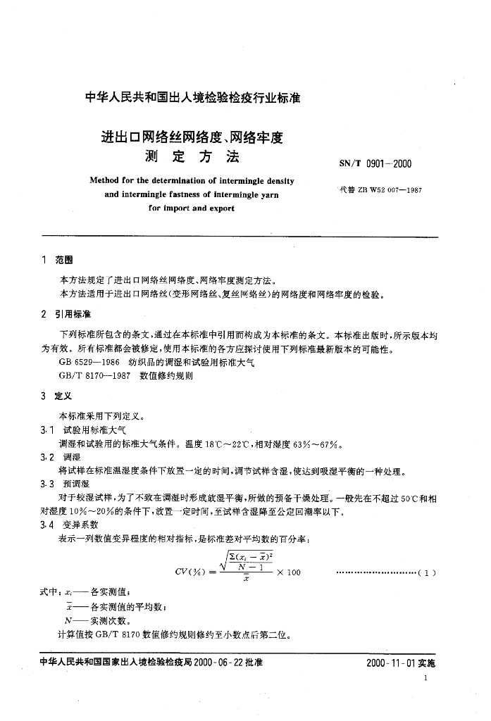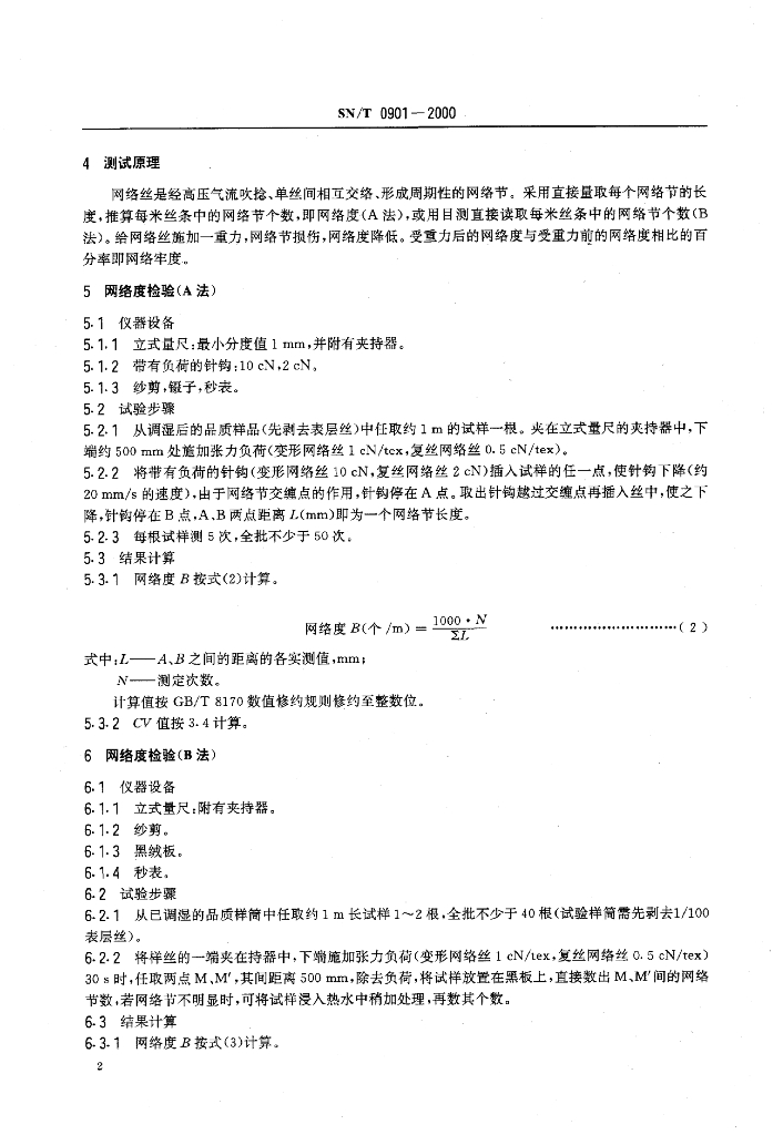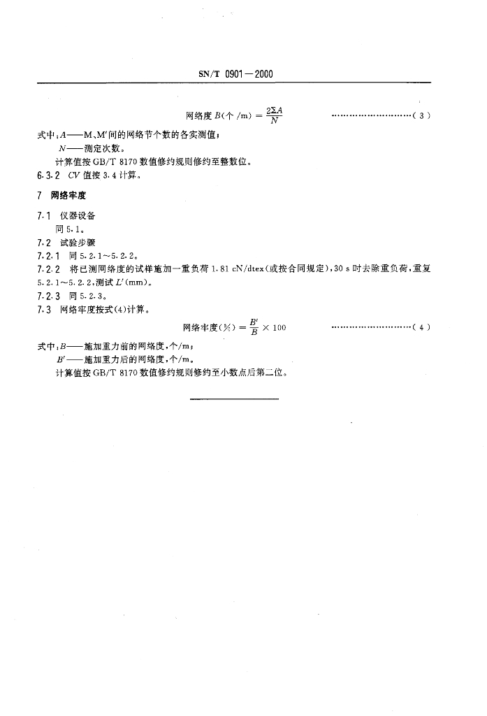 SN/T 0901-2000 进出口网络丝网络度、网络牢度测定方法