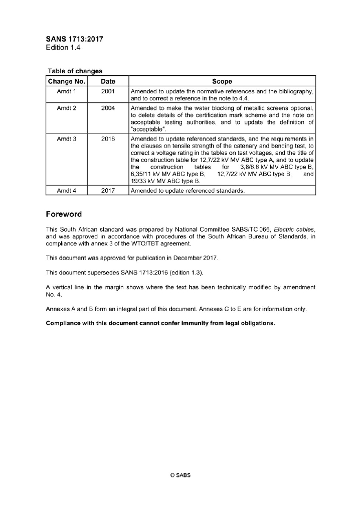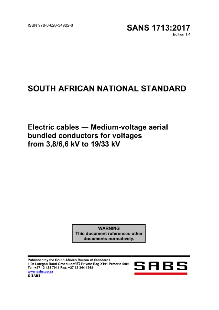 SANS 1713:2017 电缆-额定电压3.8 6.6kV至19 33kV中压架空集束导线