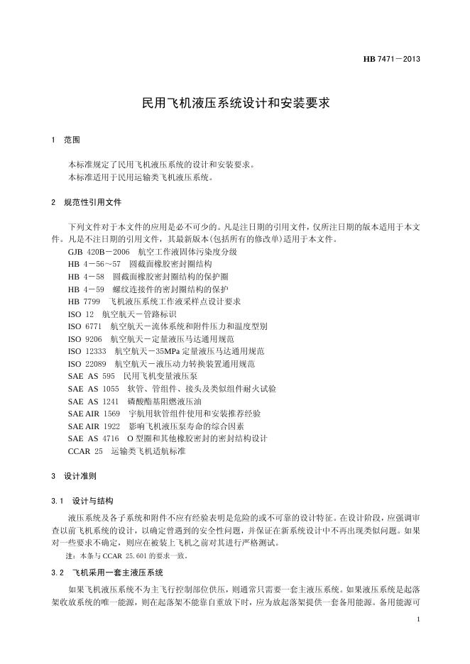 HB 7471-2013(2017) 民用飞机液压系统设计和安装要求