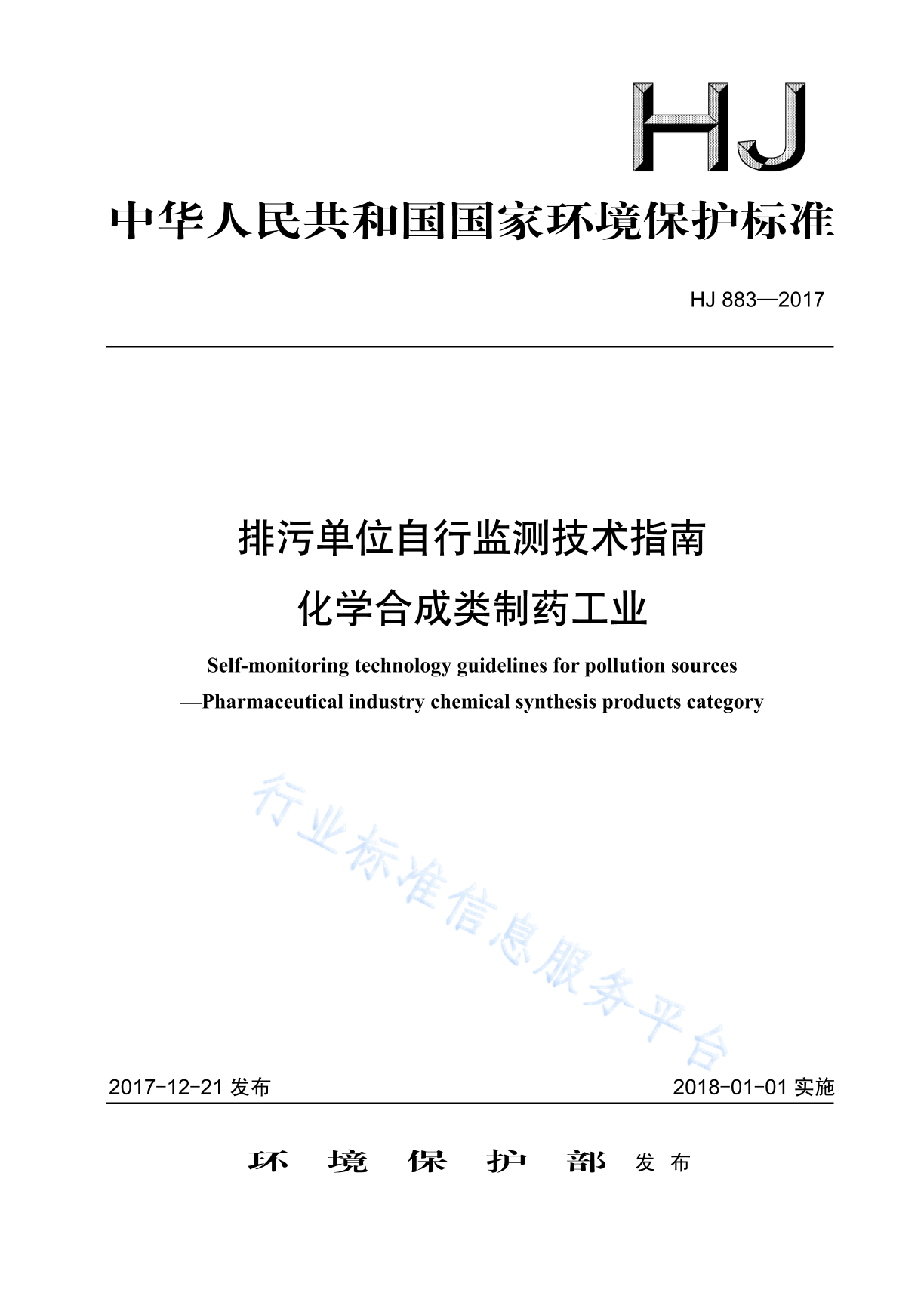HJ 883-2017 排污单位自行监测技术指南 化学合成类制药工业