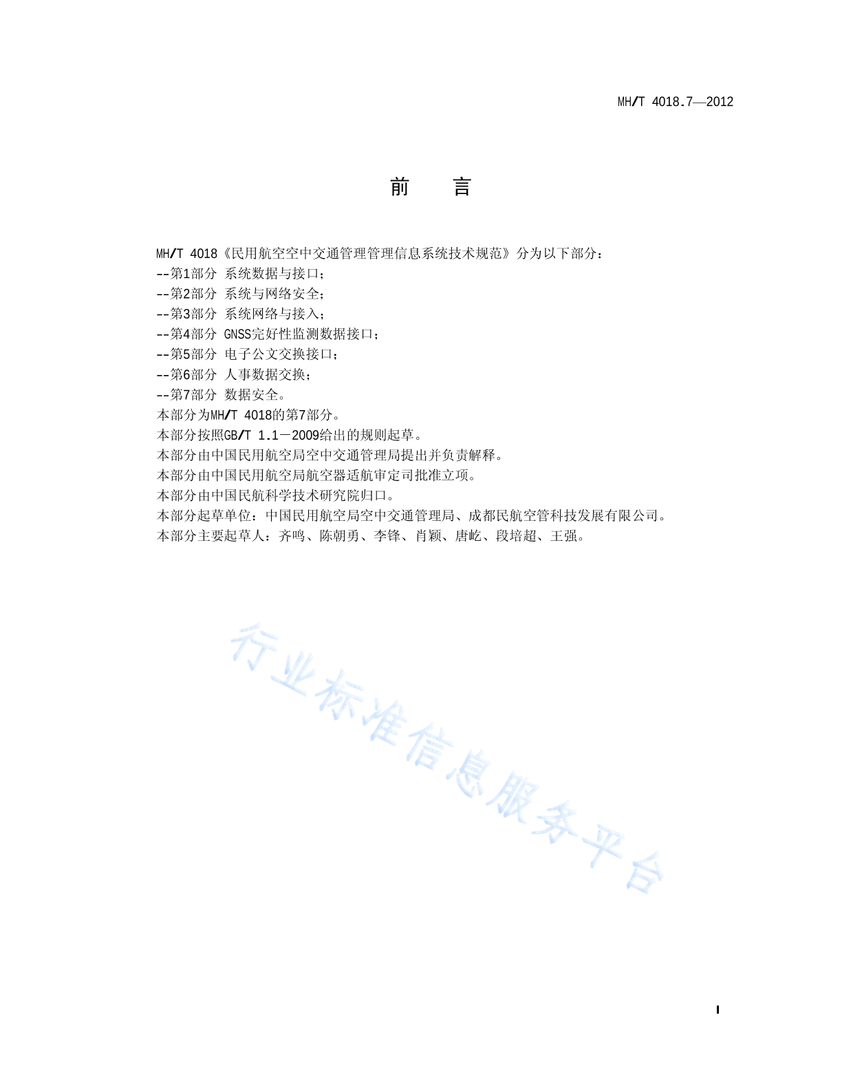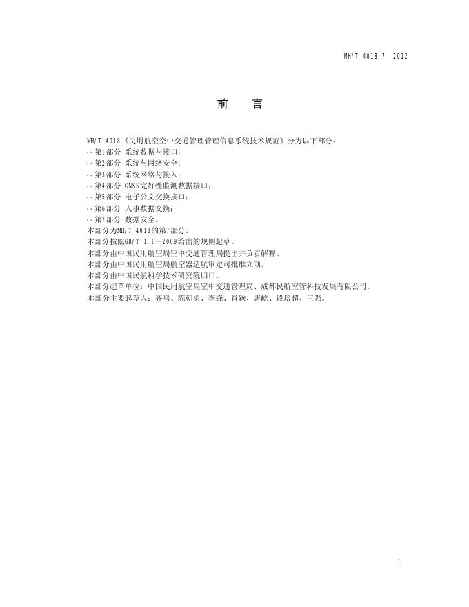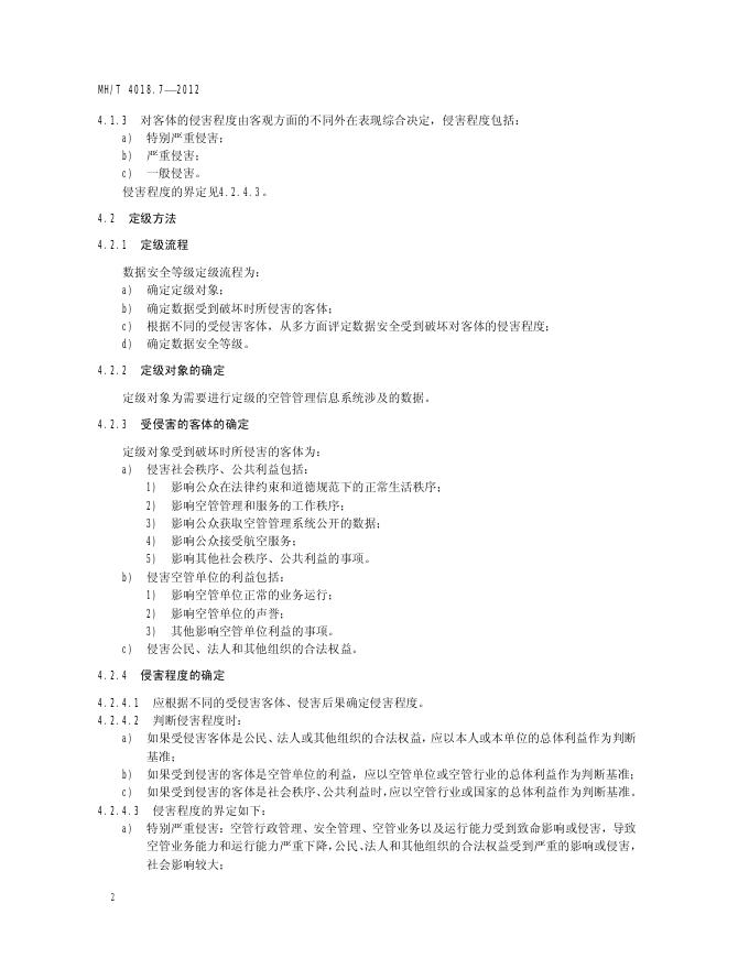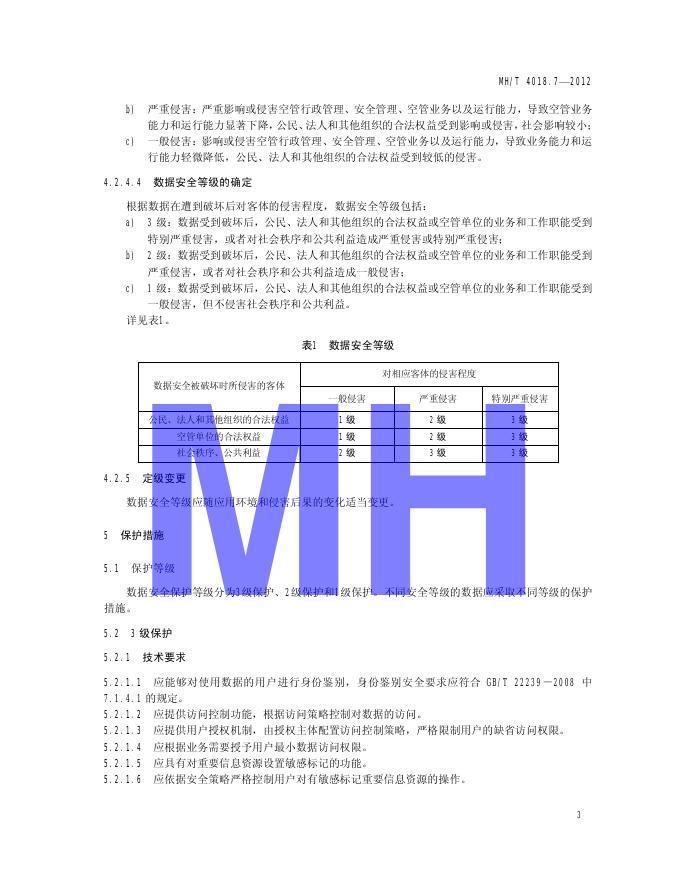 MH/T 4018.7-2012 民用航空空中交通管理管理信息系统技术规范 第7部分:数据安全