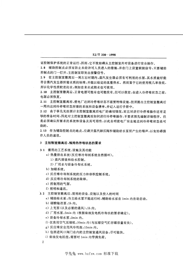 EJ/T 330-1998 压水堆核电厂控制室撤离设计准则