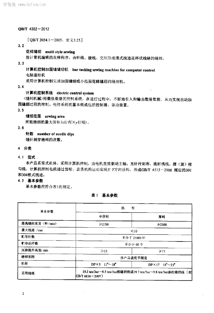 QB/T 4302-2012 工业用缝纫机计算机控制加固缝缝纫机
