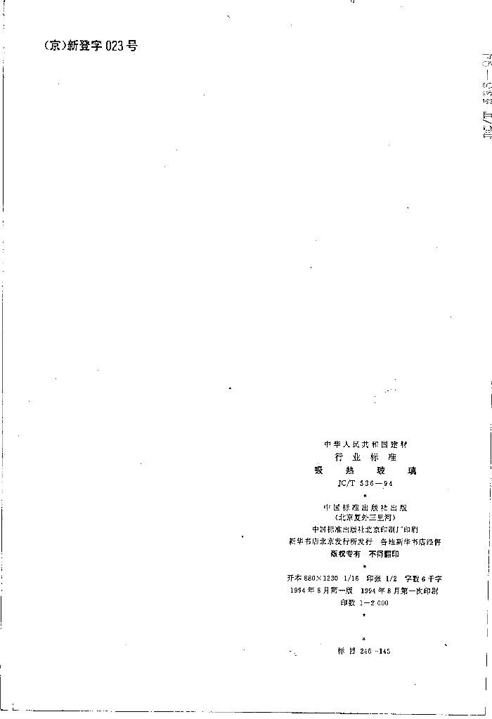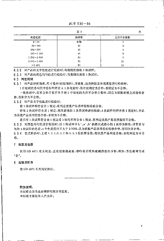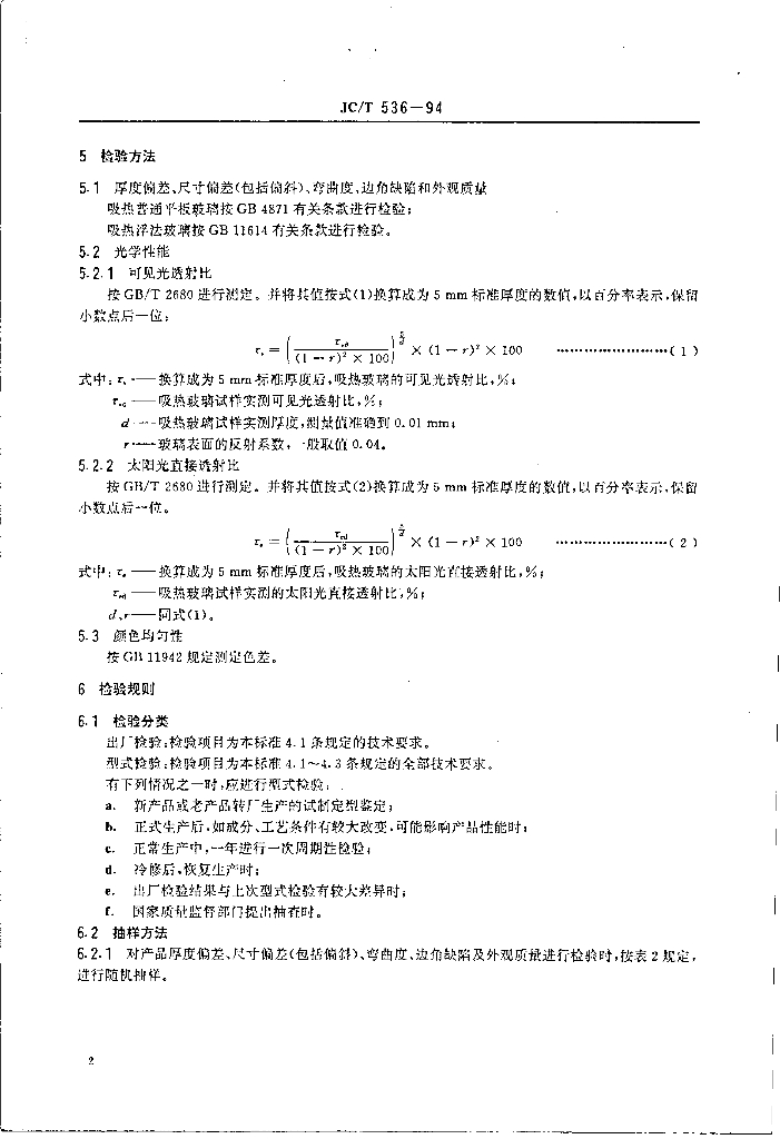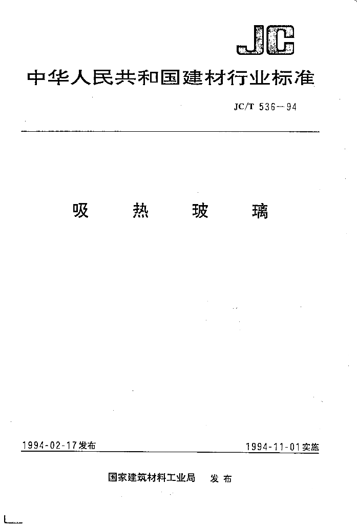 JC/T 536-1994 吸热玻璃