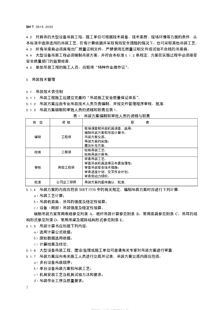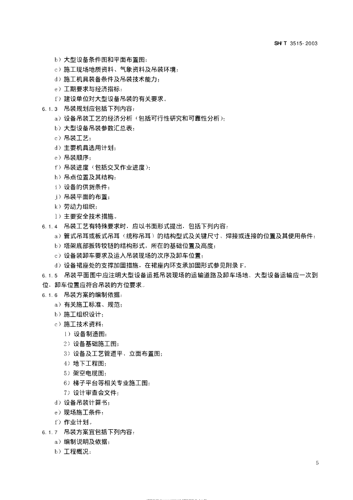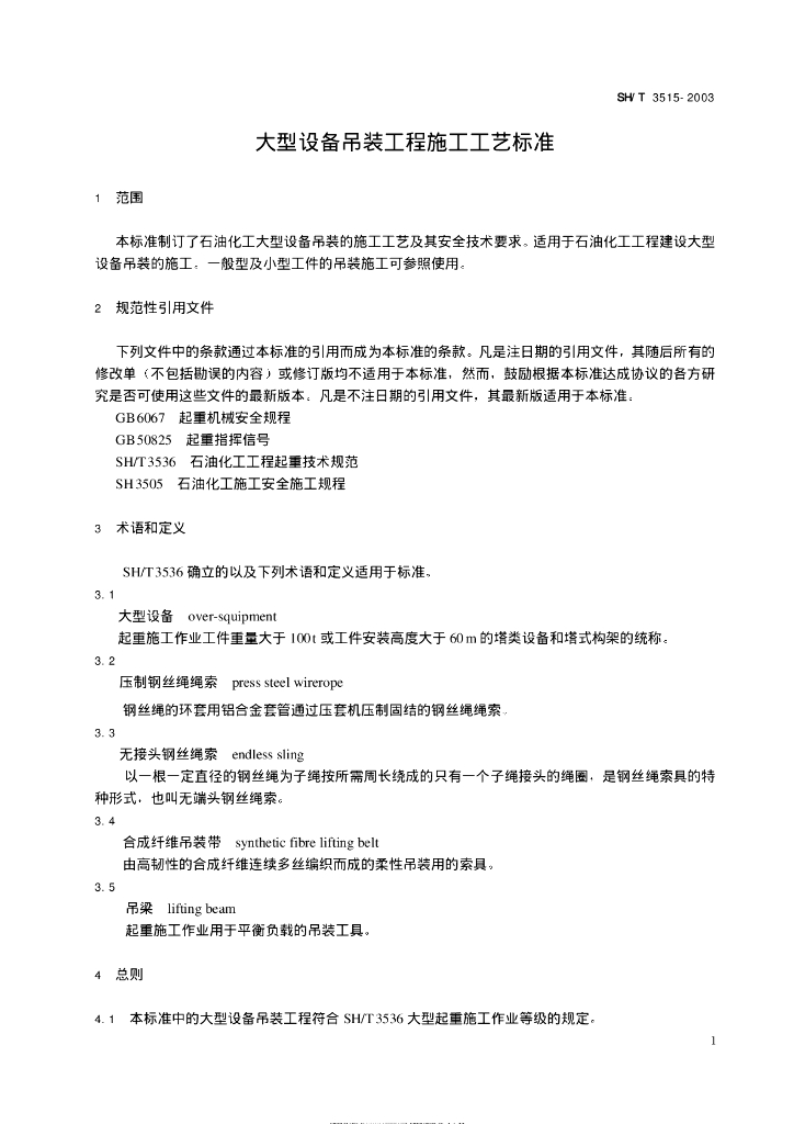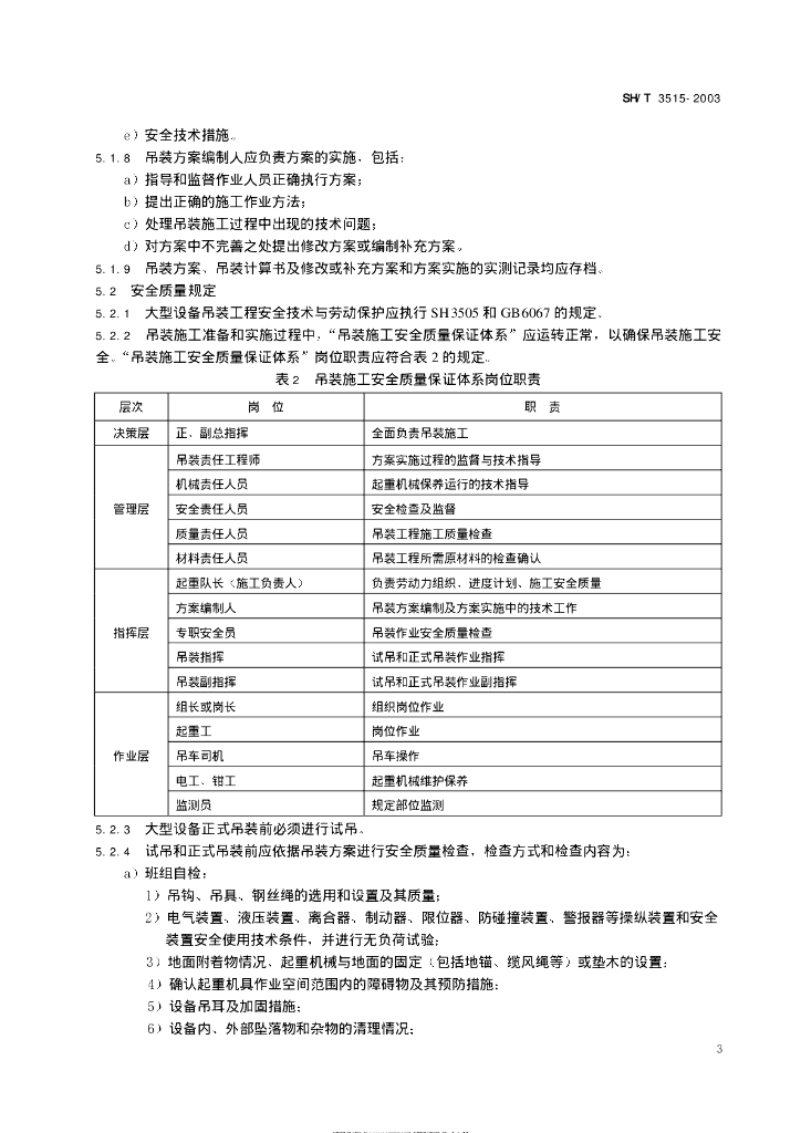 SH/T 3515-2003 大型设备吊装工程施工工艺标准