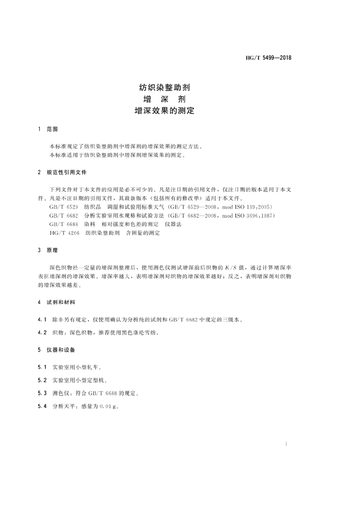 HG/T 5499-2018 纺织染整助剂增深剂增深效果的测定