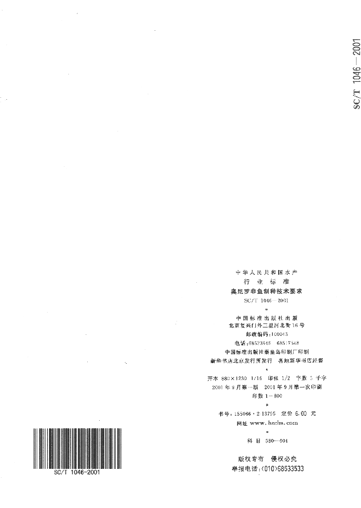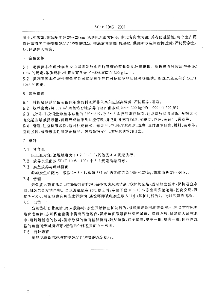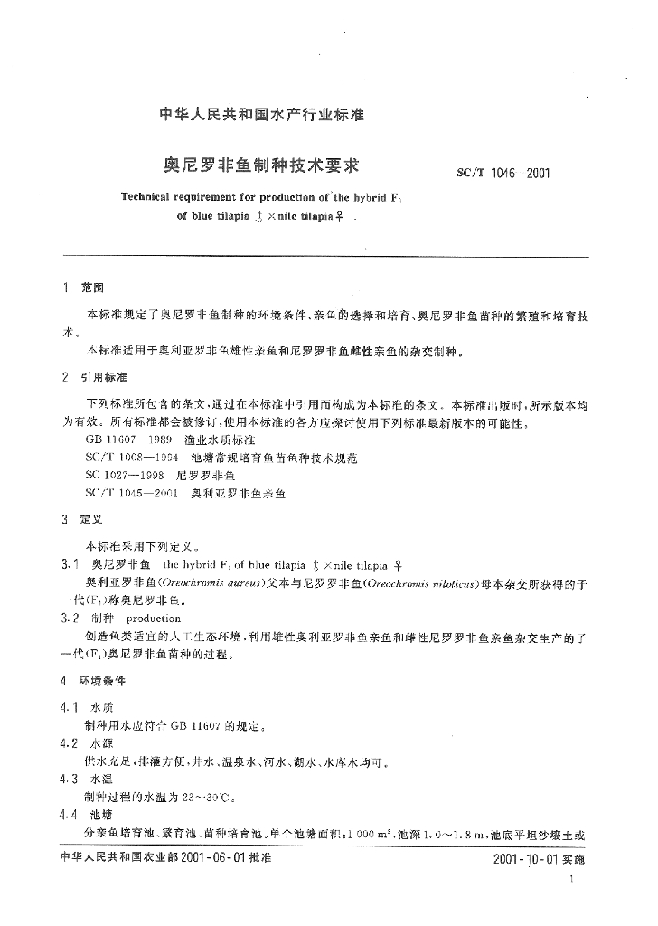 SC/T 1046-2001 奥尼罗非鱼制种技术要求