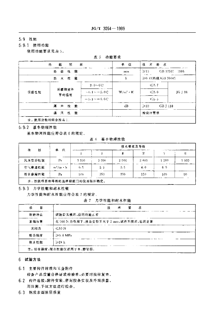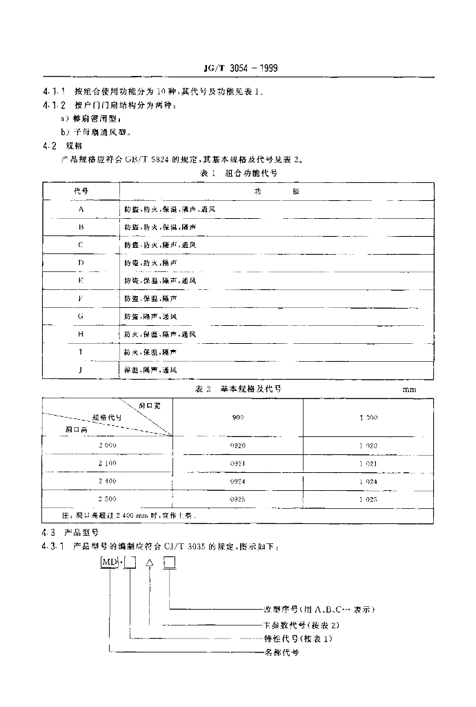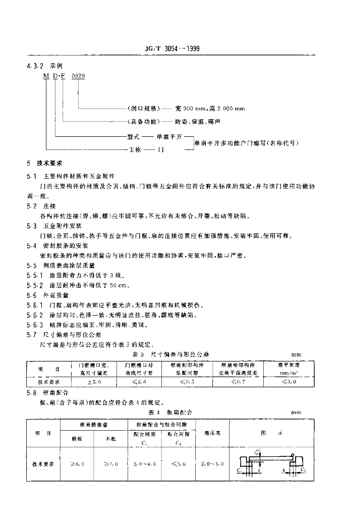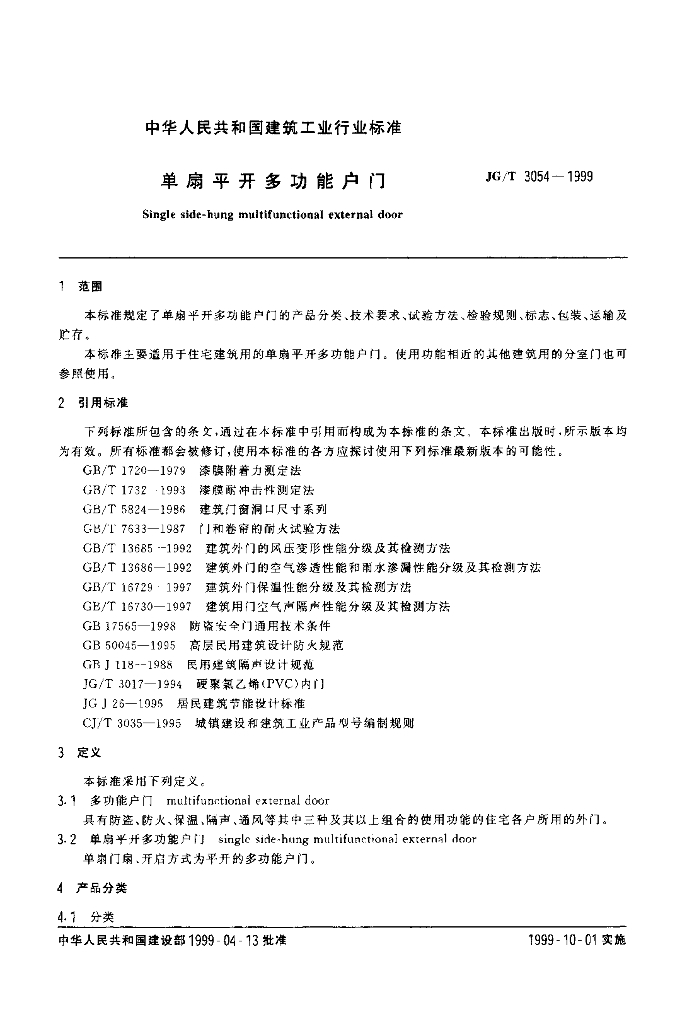 JG/T 3054-1999 单扇平开多功能户门
