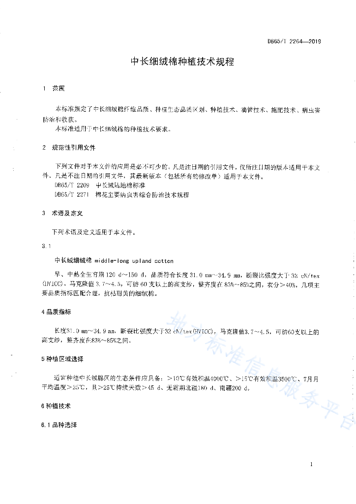DB65/T 2264-2019 中长细绒棉种植技术规程
