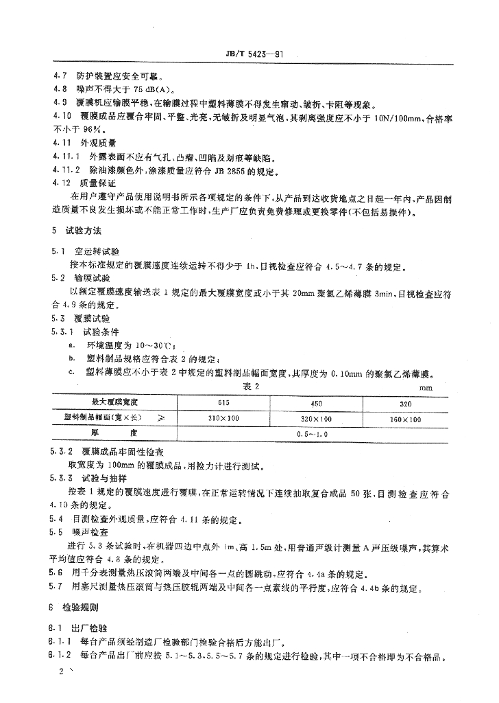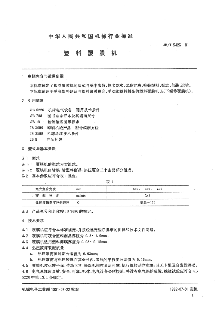 JB/T 5423-1991 塑料覆膜机