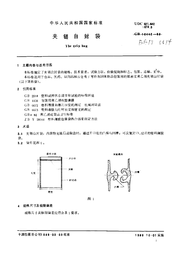BB/T 0014-1999 夹链自封袋(原GB 10442-1989)