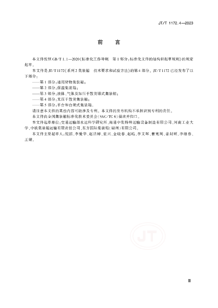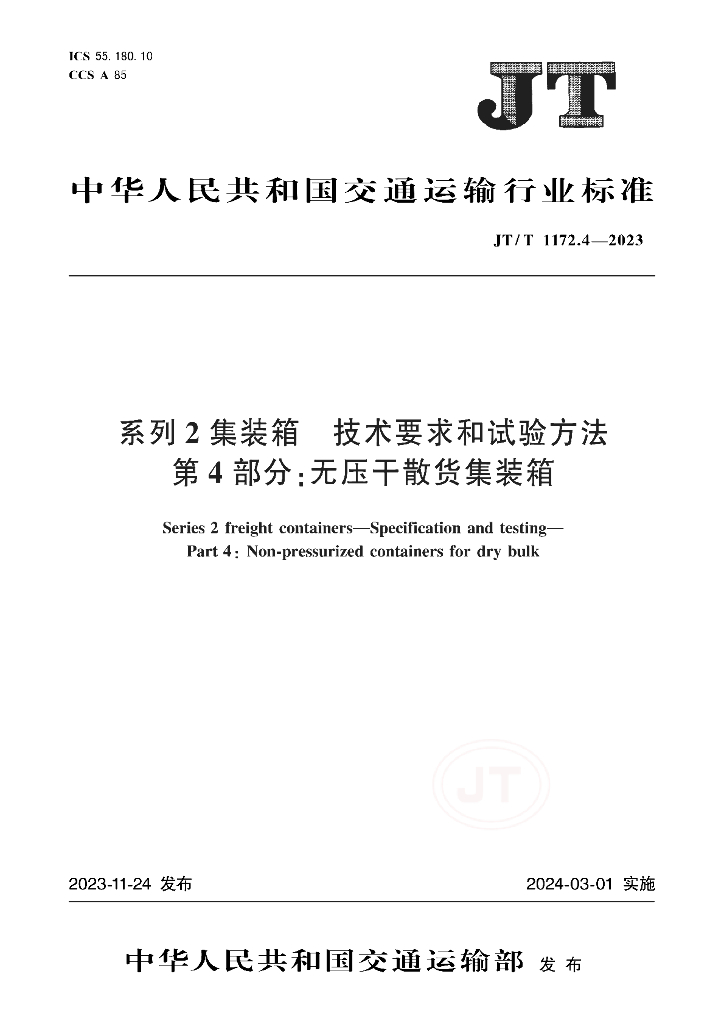 JT/T 1172.4-2023 系列2集装箱 技术要求和试验方法 第4部分:无压干散货集装箱