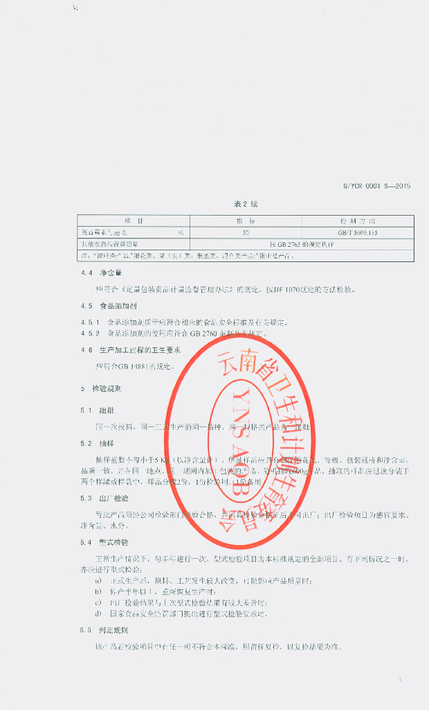 Q/YCR 0001S-2015 云南纯然茶叶制品有限公司 代用茶