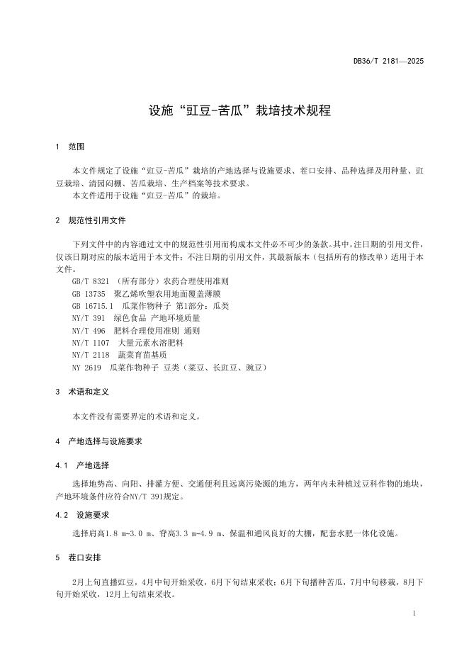 DB36/T 2181-2025 设施“豇豆-苦瓜”栽培技术规程