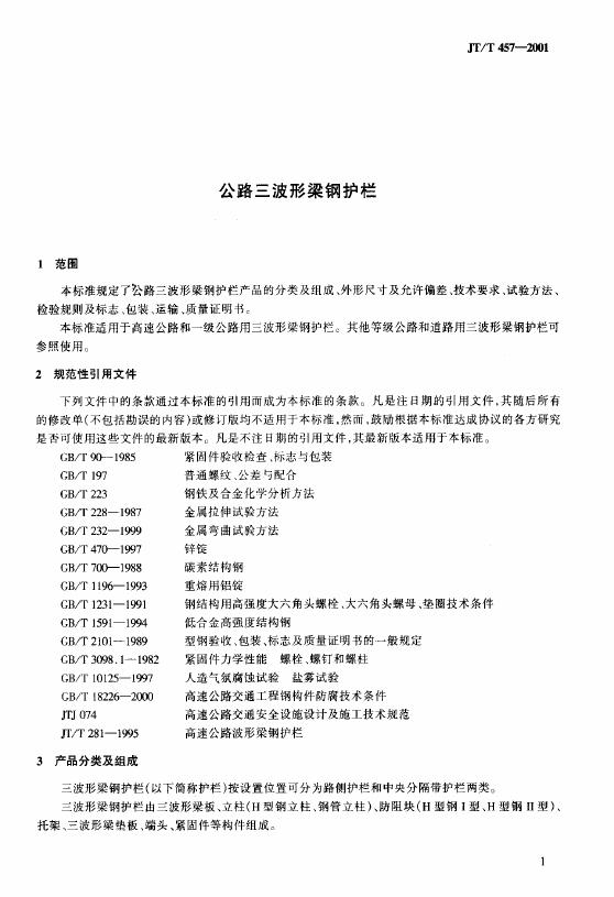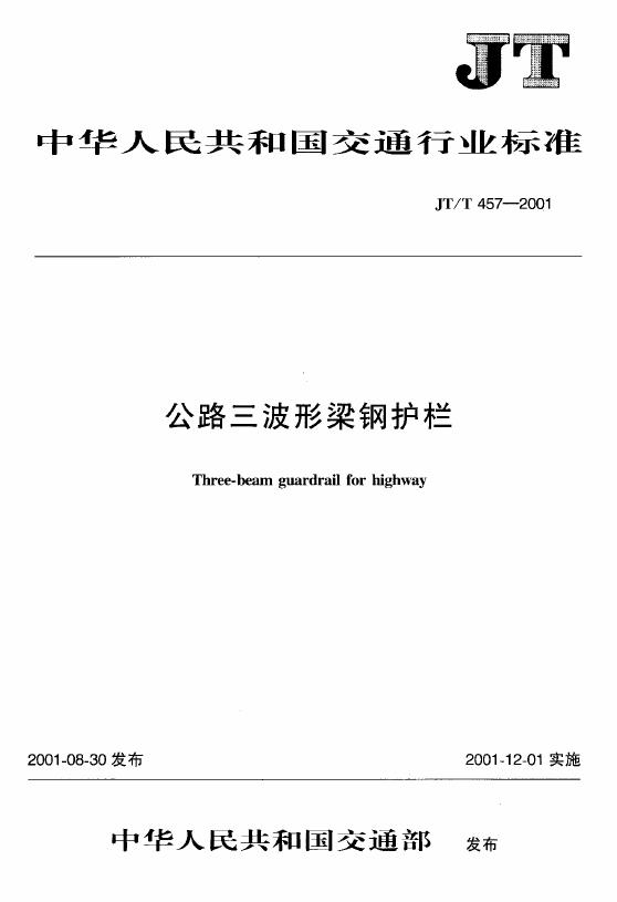 JT/T 457-2001 公路三波形梁钢护栏