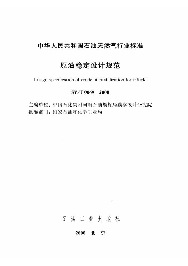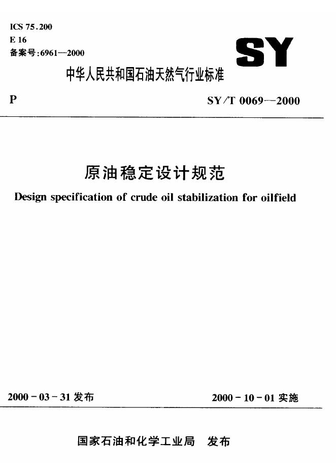 SY/T 0069-1992 原油稳定设计技术规定