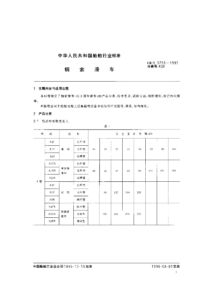CB/T 3759-1995 钢索滑车