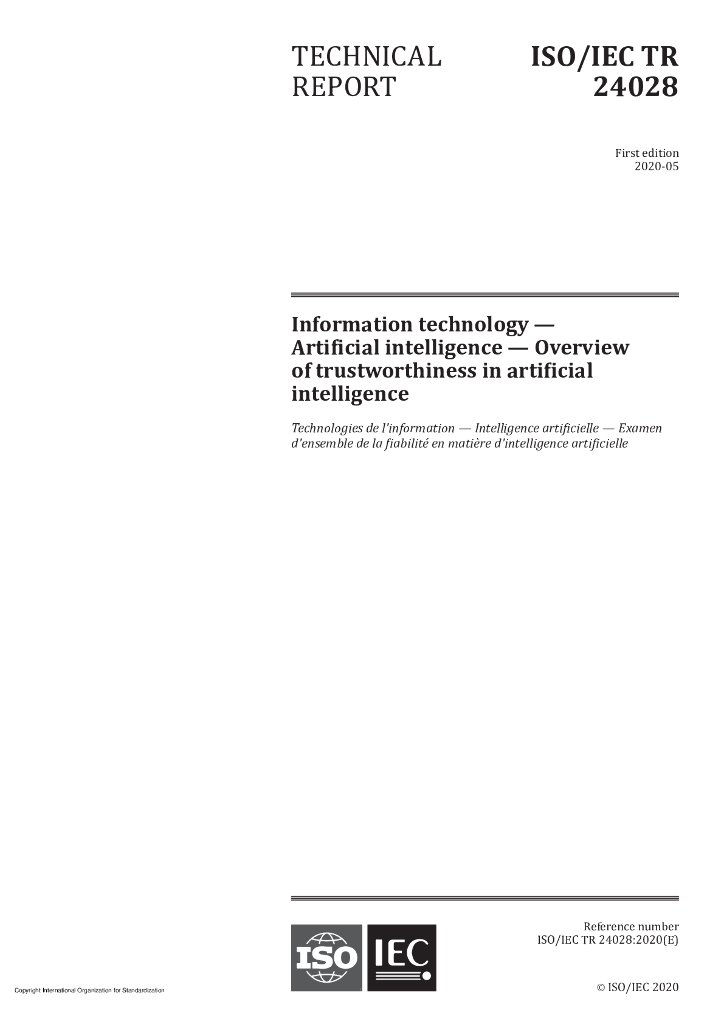 ISO/IEC TR 24028-2020 信息技术 ——人工智能——人工智能可信度综述