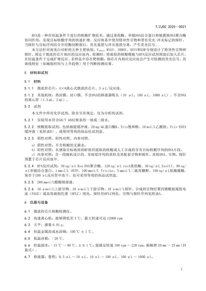T/ZJSC 0021-2025 南美白对虾5种病原快速检测 重组酶聚合酶扩增微流控芯片法