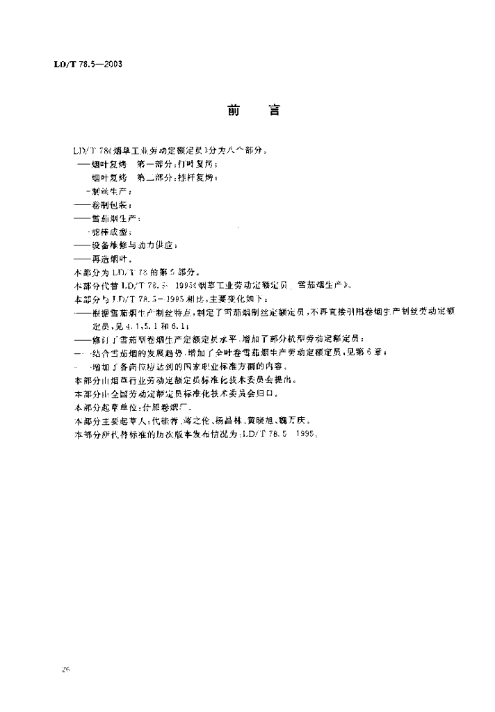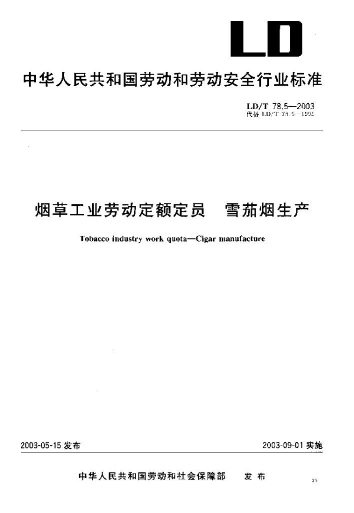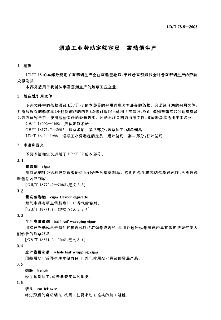 LD/T 78.5-2003 烟草工业劳动定额定员 雪茄烟生产
