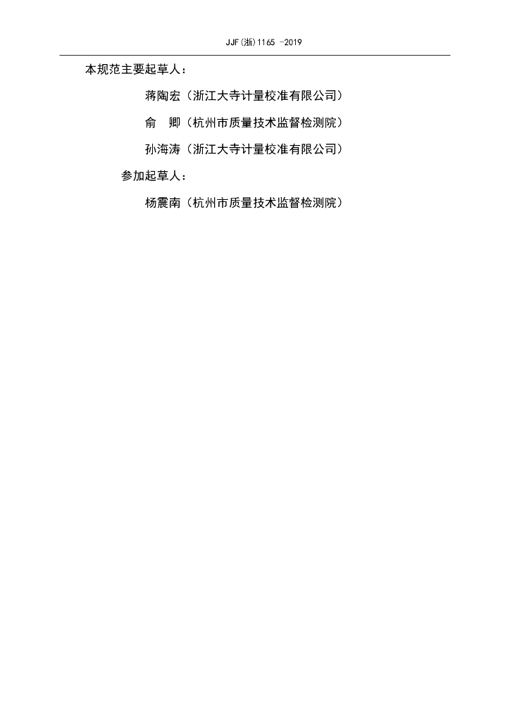 蒋陶宏(浙江大寺计量校准有限公司)、俞卿(杭州市质量技术监督检测院)、孙海涛(浙江大寺计量校准有限公司)、杨震南(杭州市质量技术监督检测院)
