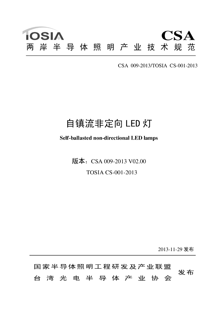 大陆主要起草单位:浙江生辉照明有限公司、南京汉德森科技股份有限公司、深圳聚作 照明股份有限公司、国家半导体光源产品质量监督检验中心(广东)、厦门通士达照明有限公 司、北京半导体照明科技促进中心。、台湾主要起草单位:工业技术研究院电子与光电研究所、台达电子工业股份有限公司、 光宝科技股份有限公司、晶元光电股份有限公司、华兴电子工业股份有限公司、隆达电子股 份有限公司、亿光电子工业股份有限公司。