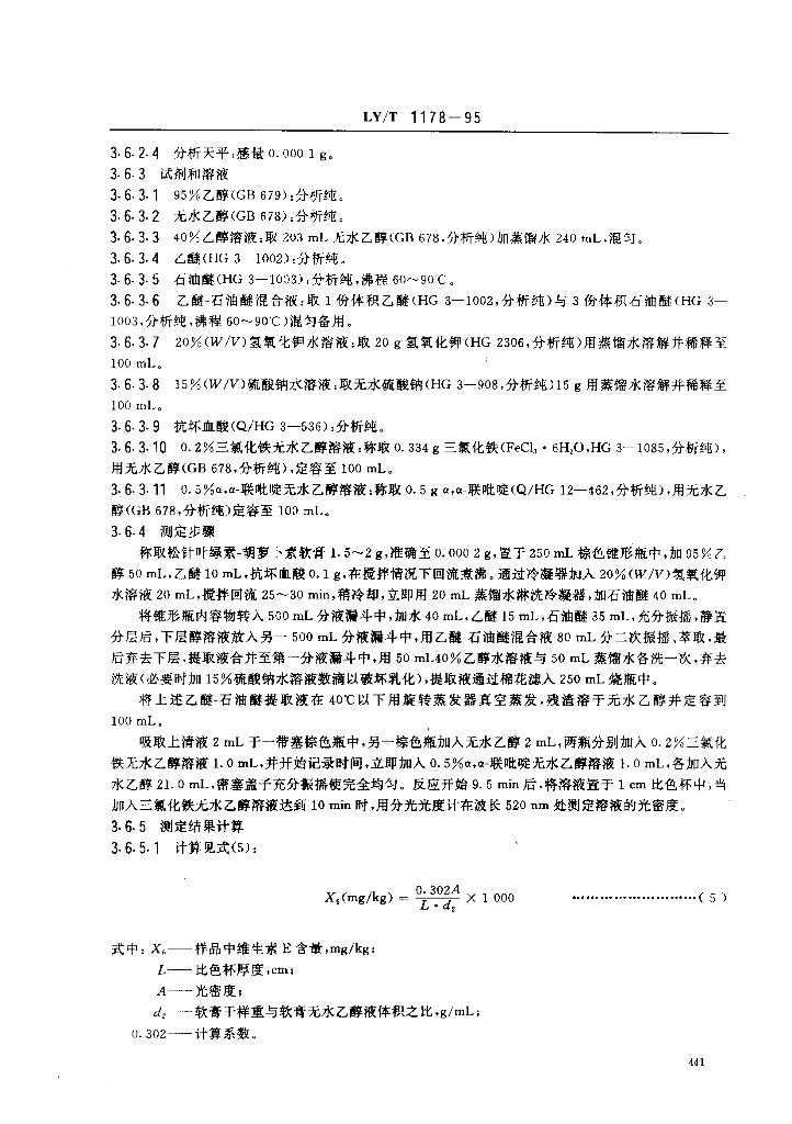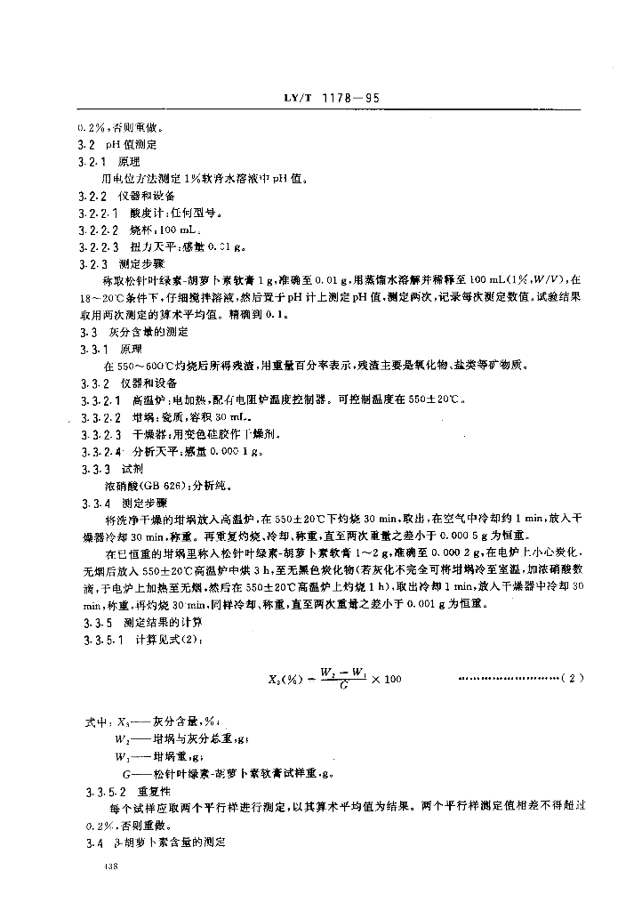 LY/T 1178-1995 松针叶绿素-胡萝卜素软膏试验方法