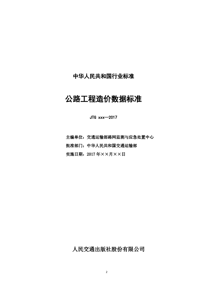 JTG xxx-2017 公路工程造价数据标准(征求意见稿)
