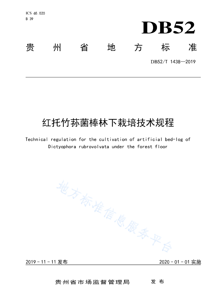 DB52/T 1438-2019 红托竹荪菌棒林下栽培技术规程