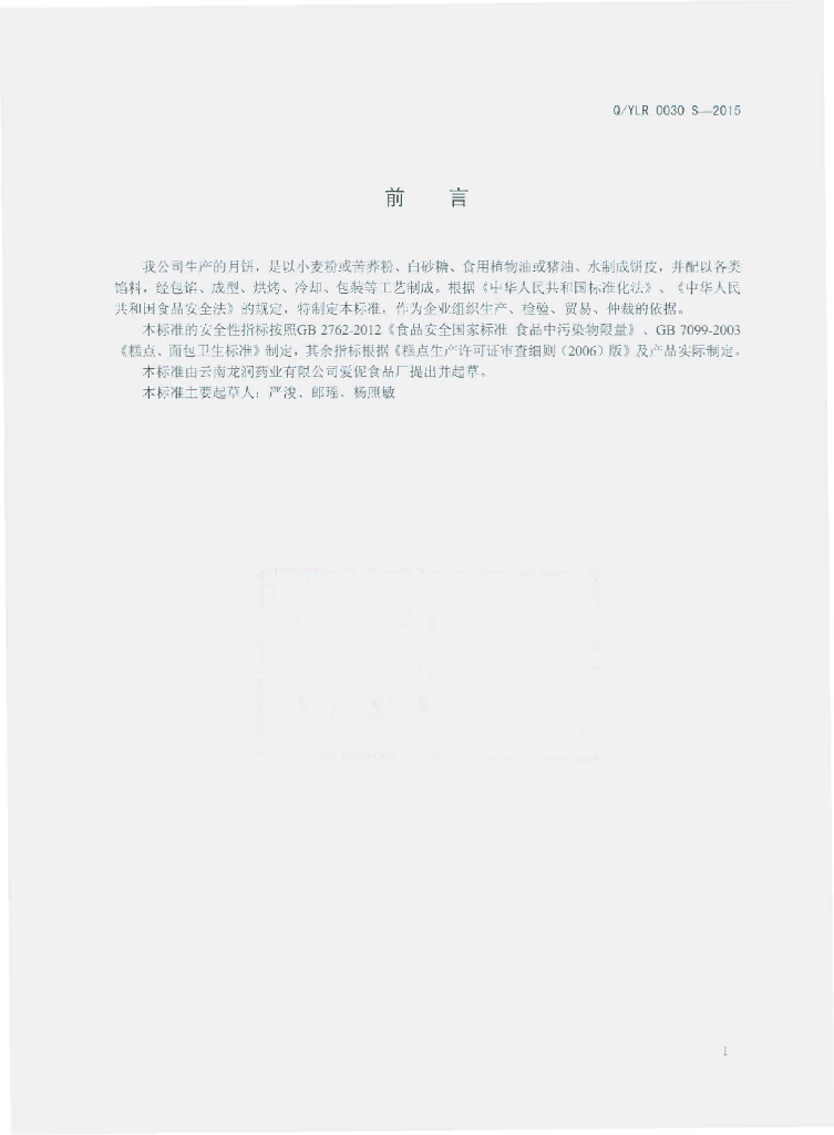 Q/YLR 0030S-2015 云南龙润药业有限公司爱伲食品厂 月饼